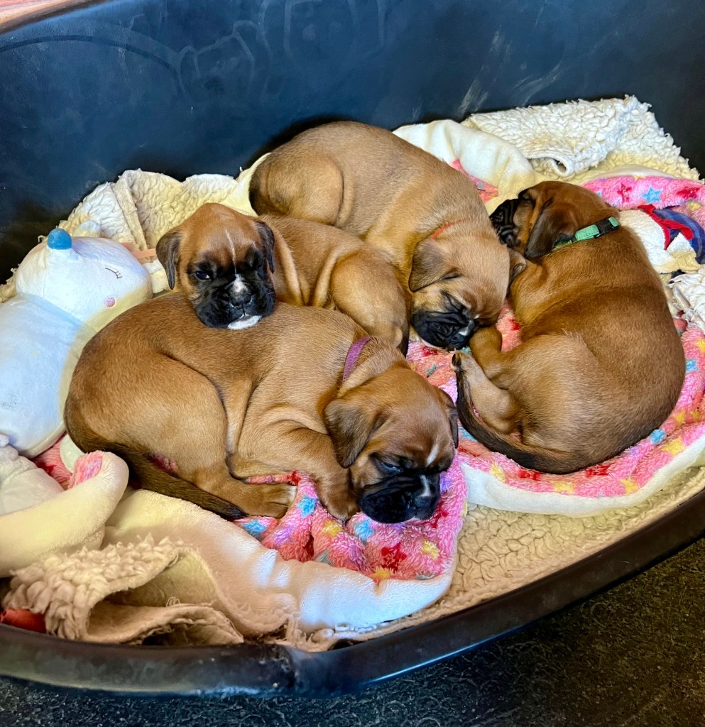 Just look at us! Aren’t we adorable? We’re irresistible. Four little chubby, love pups. There was a lot of Oohing and Aahing from the group.