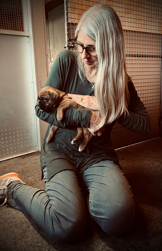 Auntie Mosca felt too much attention was given to the pups so she butted in to be cuddled as well. She’s a big girl but oh so sweet.
