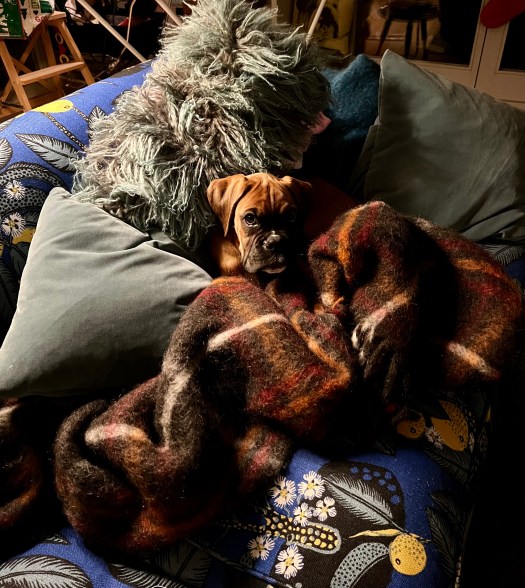 Veronica’s only concern was her new pup. “Perhaps Helga is cold”. She covered me with a blanket at night.