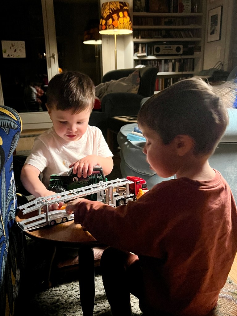 Little O shared “his” (that is Mormor’s) cars. Quite astonishing, all things considered, and from what I’ve seen around the house.