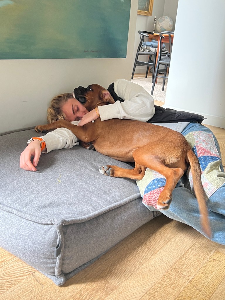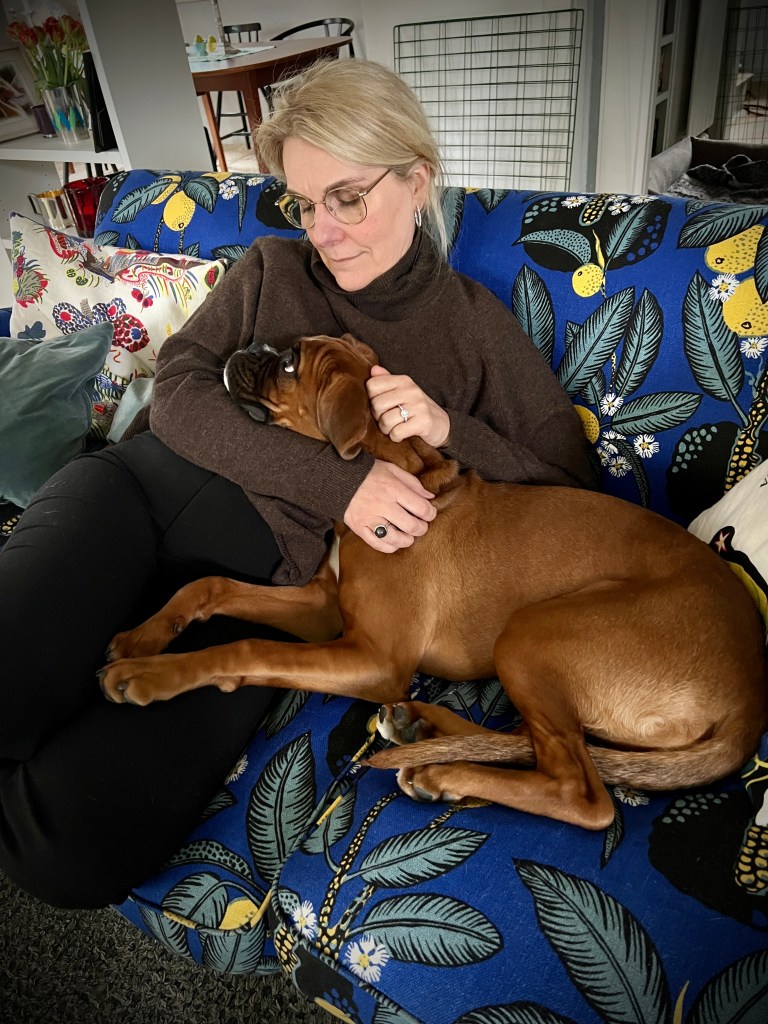 Veronica on the other hand…that’s a whole other story. She’s embarrassing, asking all sorts of ridiculous questions. You’d think she’d never owned a dog before (I’m her 5th Boxer!).